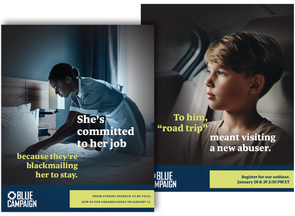 The campaign connected trafficking awareness to culturally relevant moments, leveraging trusted voices and recognizable messengers to engage new audiences and reinforce prevention messages. Paid media across digital, search, streaming, podcast, and social channels extended the campaign's reach and drove audiences to Blue Campaign resources at peak moments of public attention.